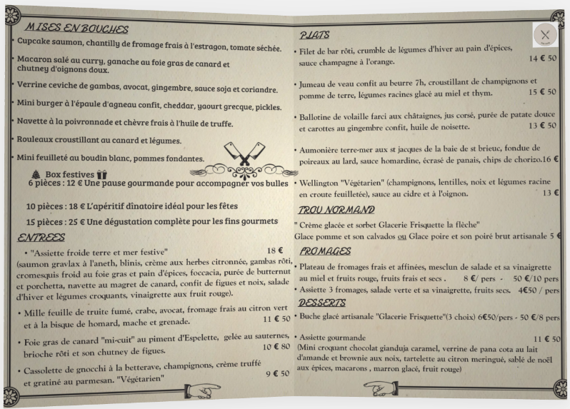 Notre service traiteur vous accompagne dans la composition de vos menus de fête : une carte traiteur féerique, des plats délicieux et des conseils sur mesure. Les festivités s'annoncent belles et gourmandes !